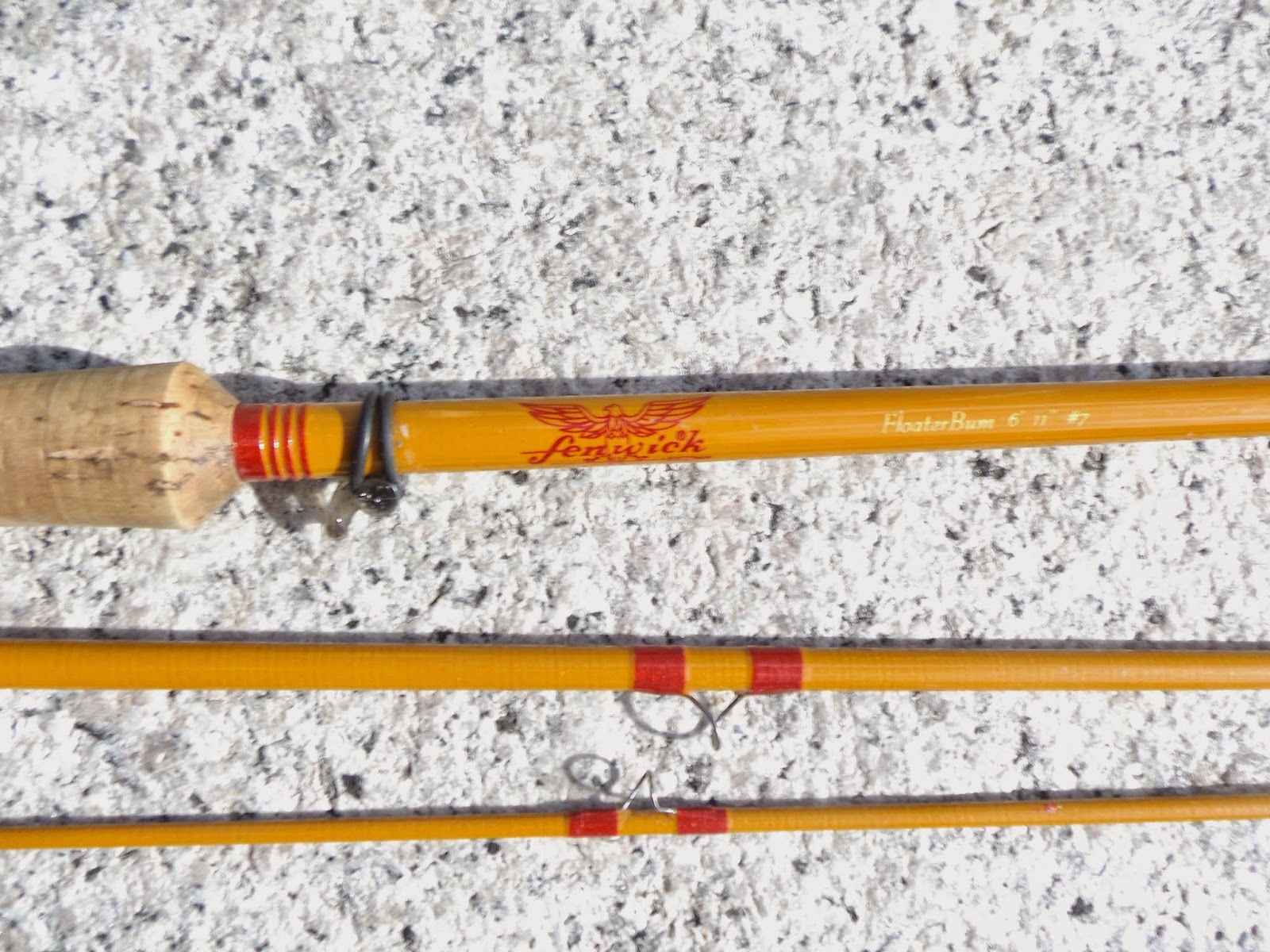 the Japanese market by Fenwick It is a six foot, ten inch long, 3 piece 7 wt fiberglass fly rod.